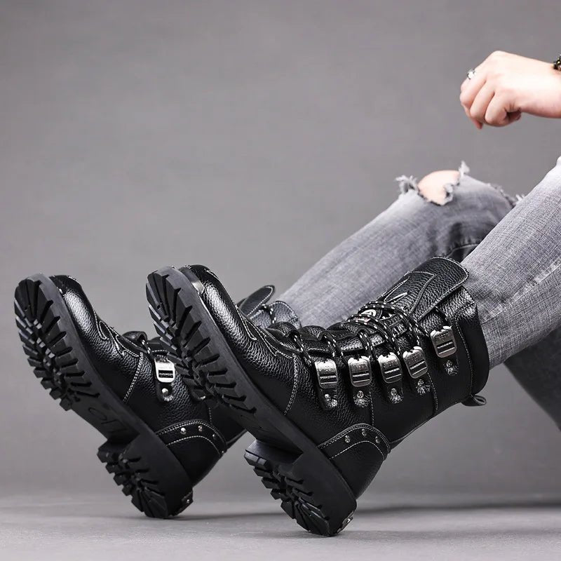 Τα γοτθικά παπούτσια με ψηλό λαιμό είναι ειδικά σχεδιασμένα για να προσφέρουν επιπλέον στήριξη και προστασία τις πιο κρύες μέρες. Η στιβαρή τους κατασκευή κρατά το πόδι ζεστό και στεγνό, κάτι ιδιαίτερα σημαντικό σε ασταθείς καιρικές συνθήκες. Ο μοναδικός σχεδιασμός αυτών των παπουτσιών δεν τραβά μόνο τα βλέμματα, αλλά προσθέτει και τόλμη και ένταση σε κάθε χειμερινή εμφάνιση, καθιστώντας τα ιδανική επιλογή για άνδρες που αναζητούν τόσο λειτουργικότητα όσο και αισθητική.