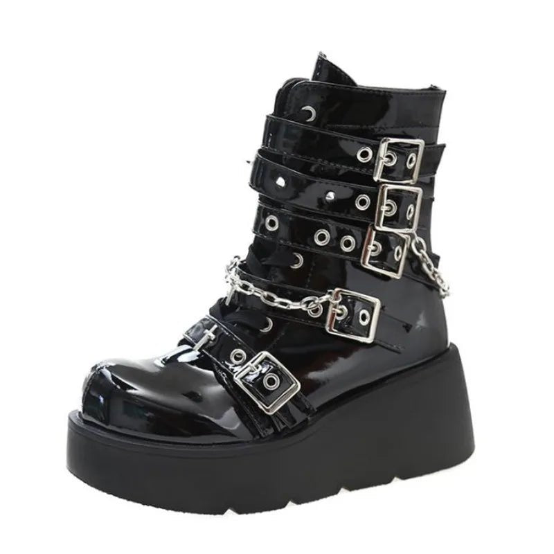 Τα γοτθικά παπούτσια με πλατφόρμα είναι σχεδιασμένα με γνώμονα τη μέγιστη άνεση και το στυλ. Η κατασκευή τους βασίζεται στην πλατφόρμα, η οποία εξασφαλίζει ομοιόμορφη κατανομή του βάρους και μειώνει την κόπωση των ποδιών, κάτι ιδανικό για άτομα που είναι δραστήρια όλη μέρα. Στυλάτα και λειτουργικά, αυτά τα παπούτσια συνδυάζουν συχνά γοτθικά μοτίβα, όπως αιχμηρές γραμμές και σκούρα χρώματα, με σύγχρονα σχεδιαστικά στοιχεία, καθιστώντας τα τόσο ελκυστικά όσο και πρακτικά για όσους εκτιμούν την άνεση και την πρωτοτυπία.