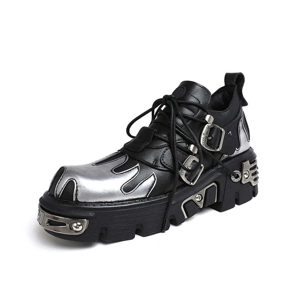 Τα γοτθικά παπούτσια με μεταλλικά στοιχεία είναι μια έντονη επιλογή για άνδρες που δεν φοβούνται να τονίσουν το αντισυμβατικό τους στυλ. Τα δυνατά, μεταλλικά στοιχεία δεν προσθέτουν μόνο χαρακτήρα, αλλά ορίζουν και το σκληρό ύφος αυτών των παπουτσιών. Είναι ιδανικά για όσους δίνουν προτεραιότητα στην ατομικότητα και θέλουν τα παπούτσια τους να είναι όχι μόνο πρακτικά, αλλά και να έχουν ισχυρή οπτική παρουσία.