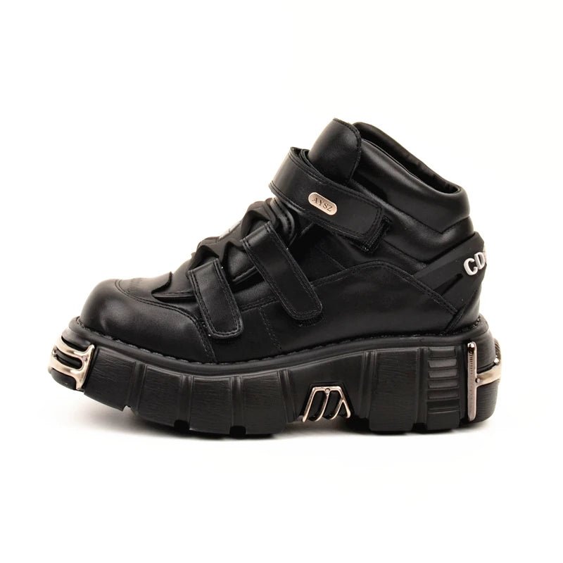 Τα γοτθικά παπούτσια με μεταλλικά στοιχεία μας είναι αφιερωμένα σε όσους τους αρέσει να ξεχωρίζουν και προτιμούν ένα στυλ με έντονο χαρακτήρα. Τα μεταλλικά διακοσμητικά, οι αιχμηρές γραμμές και οι ανορθόδοξες φόρμες προσδίδουν σε αυτά τα παπούτσια όχι μόνο ένταση, αλλά και μια ισχυρή, ατομική ταυτότητα. Σχεδιασμένα για να τραβούν τα βλέμματα και να εκφράζουν ανεξαρτησία, αυτά τα παπούτσια είναι ιδανικά για όσους αναζητούν κάτι περισσότερο από ένα απλό υπόδημα. Τα μεταλλικά ενισχυτικά δεν προσθέτουν μόνο αισθητική αξία, αλλά εξασφαλίζουν επιπλέον αντοχή και ανθεκτικότητα, καθιστώντας τα εξαιρετική επιλογή για μακροχρόνια χρήση σε διάφορες συνθήκες.