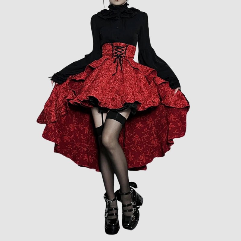 Οι γοτθικές φούστες σε στυλ Lolita είναι ένας συναρπαστικός συνδυασμός γοτθικού σκότους με γοητευτικά στοιχεία του ιαπωνικού στυλ. Χαρακτηρίζονται από πλούσιες διακοσμήσεις, όπως δαντελένιες λεπτομέρειες, κεντήματα ή φιογκάκια, που προσθέτουν μια διακριτική, ρομαντική νότα στη σκοτεινή εμφάνιση. Τα υλικά που χρησιμοποιούνται χαρίζουν στις φούστες ελαφρότητα και κομψότητα, διατηρώντας ταυτόχρονα τον γοτθικό τους χαρακτήρα. Οι γοτθικές φούστες σε στυλ Lolita είναι ιδανική επιλογή για όσους θέλουν να συνδυάσουν στοιχεία σκοτεινής πολυτέλειας με τη γλυκύτητα και την απαλότητα του ιαπωνικού στυλ. Ιδανικές για ειδικές περιστάσεις, όπως θεματικά πάρτι ή ιδιαίτερες καθημερινές εμφανίσεις, προσδίδουν σε κάθε άτομο μια ξεχωριστή, ανεπανάληπτη όψη.