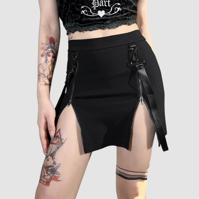 Οι γοτθικές φούστες με σκισίματα είναι ένας εξαιρετικός τρόπος να προσθέσεις μια δραματική πινελιά στη γκαρνταρόμπα σου. Τα σκισίματα, είτε με τη μορφή ασύμμετρων κοπών είτε ως διακριτικά ανοίγματα στα πλάγια, εισάγουν ένα στοιχείο αισθησιασμού και μυστηρίου. Τέτοιου είδους φούστες συνδυάζονται άψογα με γοτθικές λεπτομέρειες, δημιουργώντας τολμηρά και στιλάτα σύνολα. Στη συλλογή μας θα βρεις ποικιλία μοντέλων – από διακριτικά σκισίματα που χαρίζουν στη φούστα ελαφρότητα και κίνηση, μέχρι πιο τολμηρές εκδοχές που αναδεικνύουν τα πόδια και τραβούν την προσοχή. Κατασκευασμένες από υλικά όπως οικολογικό δέρμα, μετάξι ή τούλι, οι φούστες με σκισίματα είναι ιδανικές για βραδινές εξόδους, θεματικά πάρτι ή άλλες ιδιαίτερες περιστάσεις, όταν θέλεις να τονίσεις την ατομικότητά σου και να ξεχωρίσεις από το πλήθος.