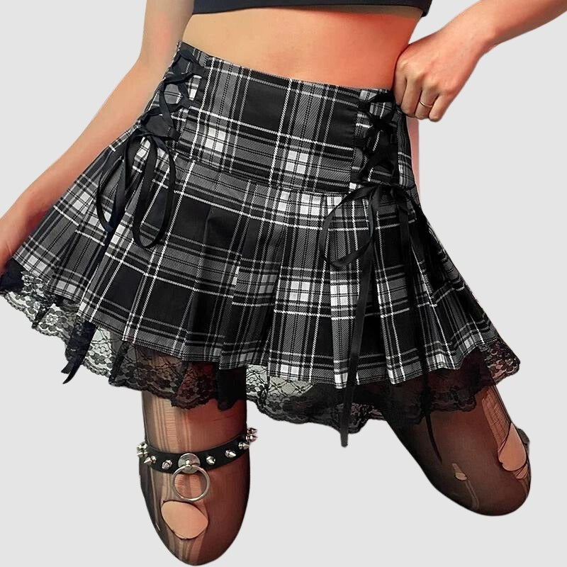 Οι γοτθικές φούστες διακοσμημένες με δαντέλα και κεντήματα είναι ένα εξαιρετικό παράδειγμα του πώς οι διακριτικές λεπτομέρειες μπορούν να δημιουργήσουν ένα θεαματικό αποτέλεσμα. Η δαντέλα, γνωστή για την απαλότητα και τη φινέτσα της, προσθέτει στο σκοτεινό στυλ ένα στοιχείο κομψότητας και ρομαντισμού. Κάθε φούστα στη συλλογή μας είναι προσεκτικά φινιρισμένη με δαντελένιες λεπτομέρειες, που μπορούν να διακοσμούν το κάτω μέρος της φούστας, τη μέση ή ολόκληρη την επιφάνεια, δημιουργώντας ένα εντυπωσιακό παιχνίδι υφών και διαφάνειας. Τα κεντήματα, από την άλλη, προσθέτουν βάθος και μοναδικότητα, χάρη στα προσεκτικά δουλεμένα μοτίβα που μπορεί να περιλαμβάνουν γοτθικά θέματα, όπως λουλούδια, κρανία ή γεωμετρικά σχήματα. Τέτοιου είδους φούστες είναι ιδανικές για κομψές εξόδους, καθώς οι λεπτομερείς τους φινιρισμοί τραβούν το βλέμμα και προσθέτουν σε κάθε εμφάνιση έναν ξεχωριστό χαρακτήρα, συνδυάζοντας τη διακριτικότητα με το τολμηρό γοτθικό στυλ.