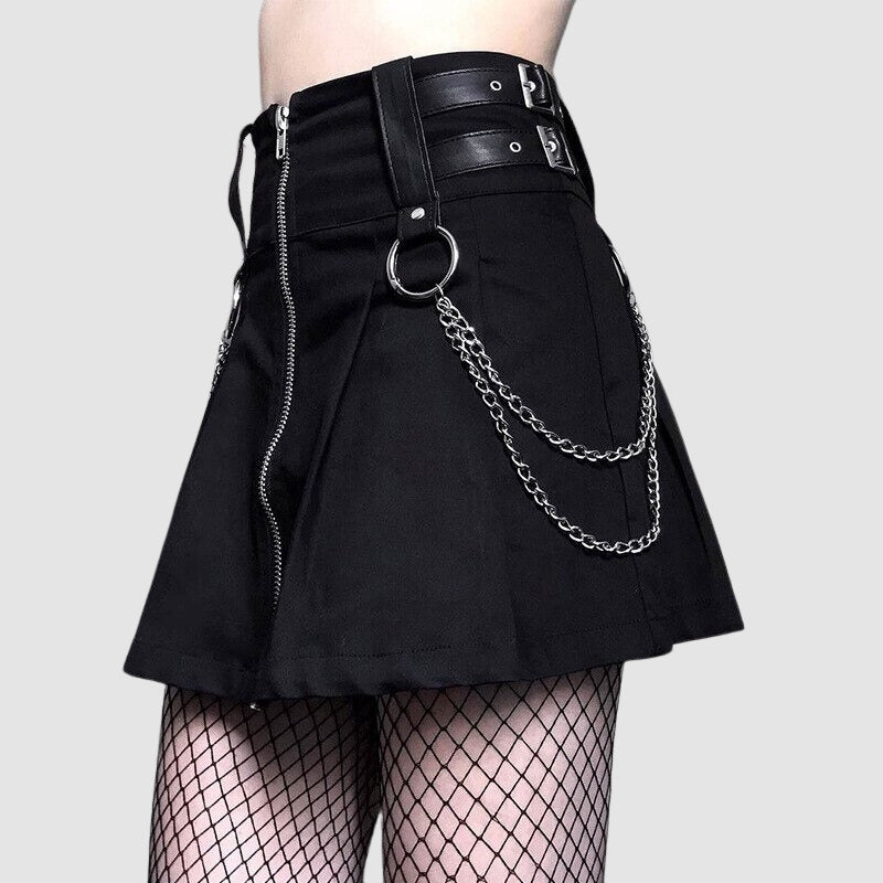Οι κοντές γοτθικές φούστες συνδυάζουν τόλμη και αισθησιασμό, προσφέροντας εντυπωσιακές και δυναμικές επιλογές για όσους θέλουν να ξεχωρίζουν με το στυλ τους. Χάρη στις μοναδικές γραμμές που αναδεικνύουν τα πόδια και προσθέτουν χαρακτήρα σε κάθε εμφάνιση, οι κοντές μας φούστες είναι ιδανική επιλογή για λιγότερο επίσημες περιστάσεις, πάρτι ή συναντήσεις με φίλους. Κατασκευασμένες από υλικά όπως οικολογικό δέρμα, δαντέλα ή ντένιμ, προσφέρουν όχι μόνο ελκυστική εμφάνιση, αλλά και άνεση και ανθεκτικότητα. Οι επιπλέον πινελιές, όπως μεταλλικά τρουκς, κρόσσια ή ασύμμετρες κοπές, χαρίζουν στις φούστες γοτθική ατμόσφαιρα και τις μετατρέπουν στο κεντρικό στοιχείο κάθε συνόλου.